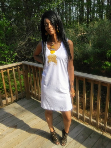 **Featured Dress: Gold Sparkle "Queen Vibes 365" Racerback Dress**
