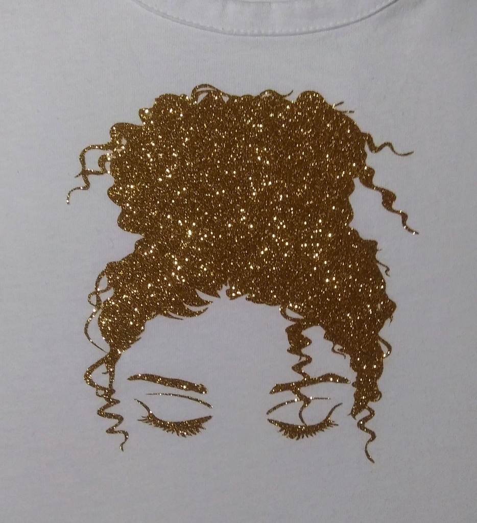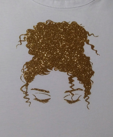 Gold Sparkle "Queen Vibes 365" Curly Messy Bun Royal Tee
