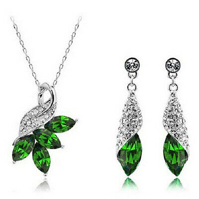 Graceful & Delicately designed sparkling Paved Crystal & Almond Emerald Crystal adorned "BeYoutiful Swan" necklace & matching Almond Emerald peek-a-boo Earrings!