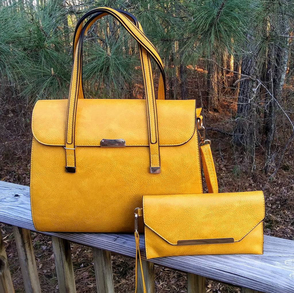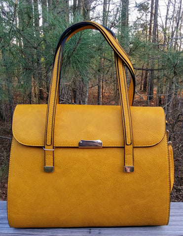 Large Smooth Textured Stylish Chic Mustard "BeYoutiful Mallory" Vegan Leather Satchel Bag