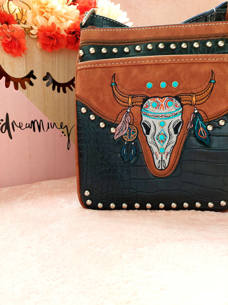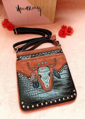 Black "BeYoutiful Avaya" Cowgirl Western Messenger Bag Features: