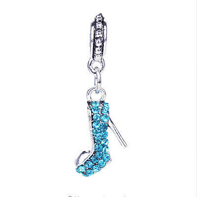 Fashionable Silver Alloy Aqua Crystal Stiletto Pendant Bead Charm