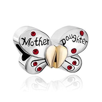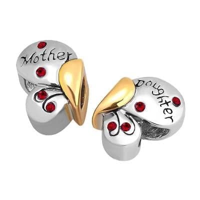 Charmingly Sweet Ruby Crystal Adorned "BeYoutiful Duo" Silver Alloy Butterfly Charm Beads