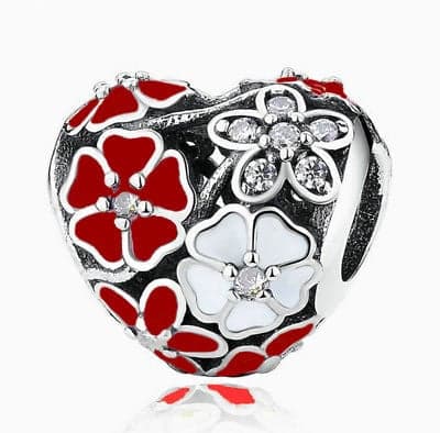 Chic Vibrant Red Floral Crystal "BeYoutiful Hearts of Bloom" Silver Alloy Charm Bead