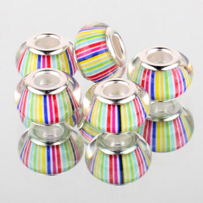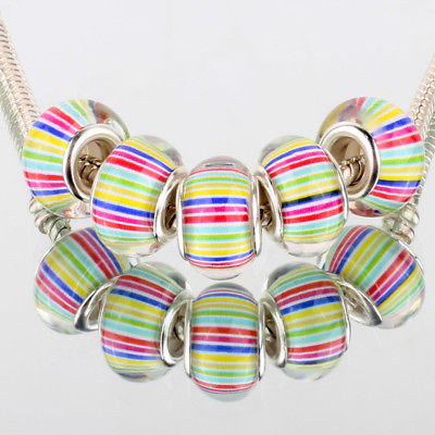 5Pc BeYoutiful Lines Handcrafted 4mm Silver Plated Core Murano LampWork Charm Beads