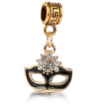 Fun & Unique Black & Gold Crystal Glam "BeYoutiful Masquerade" Alloy Charm Bead