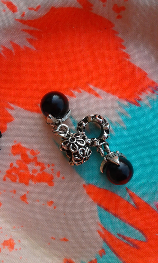 Silver and Black Pearl Flower Charm Bead is the Perfect Pendant Accessory for Any Charm Necklace or Floating Locket Necklace
