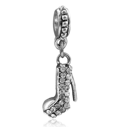 Sparkling Fashionista Bling "BeYoutiful Stiletto" Silver Alloy Crystal Charm Bead