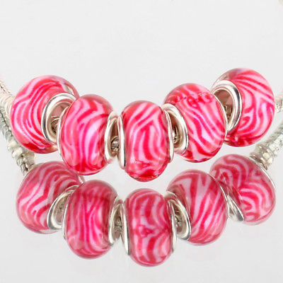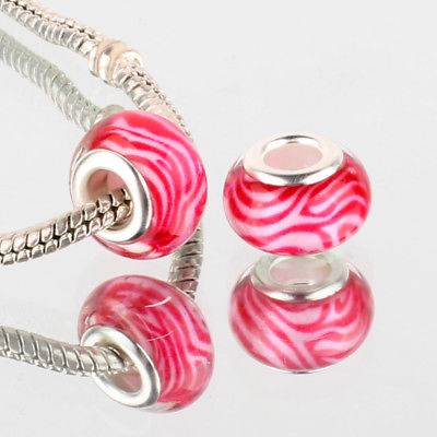 5Pc Lovely Handcrafted Pink Swirl "Dream BeYoutiful" Silver Core Murano Glass 4mm Round Charm Beads