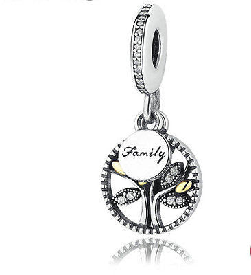 925 Sterling Silver Gold Leaf Crystal Family Engraved "Tree of Life" Pendant Charm Bead