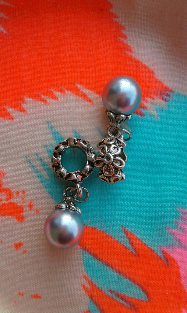 Silver and Gray Pearl Flower Charm Bead is the Perfect Pendant Accessory for Any Charm Necklace or Floating Locket Necklace