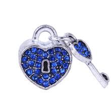 Bold and Beautiful Sapphire Crystal Studded Heart Key Lock of Love 4mm Alloy Charm Bead