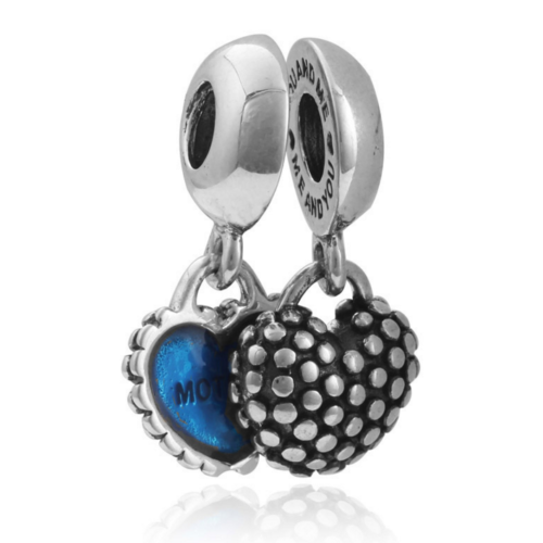Beautiful Blue and Silver Alloy Mother and Son Pendant Heart Charm Bead