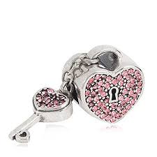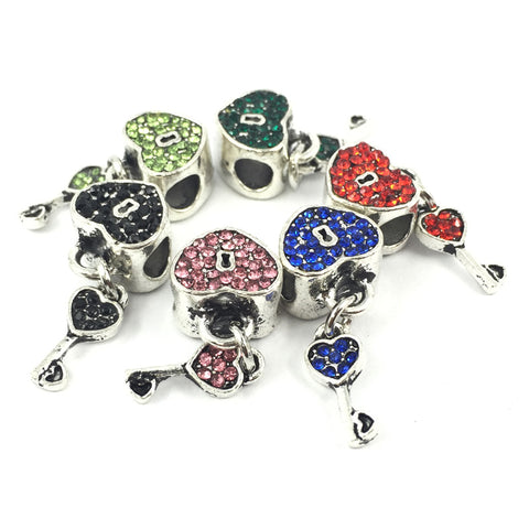 Sweet Dazzling Pink Rose Crystal Studded "BeYoutiful Key to My Heart" 4mm Silver Alloy Love Charm Bead