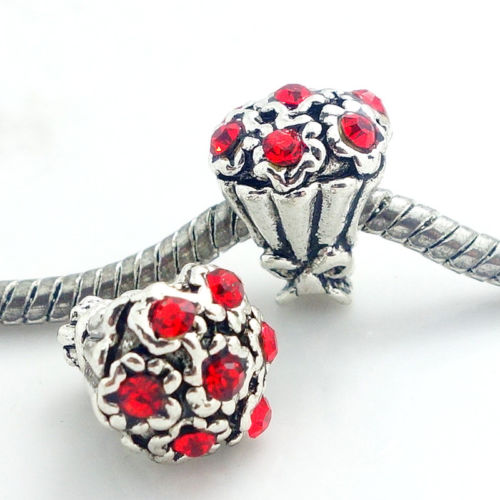 Charmingly Sweet Red Rose Crystal Embellished BeYoutiful Bouquet Silver Alloy Charm Bead