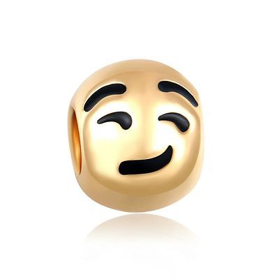Trendy & Expressive Fun "BeYoutiful Smirk" 18k Gold Plated Alloy Emoji Charm Bead