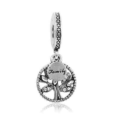 Beautiful Crystal Silver Plated Family Engraved "Family Tree" Pendant Charm Bead