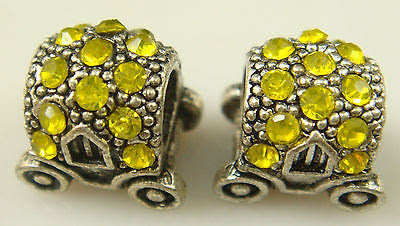 Stunning Antique Silver Yellow Crystal Glamour "BeYoutiful Royal Carriage" Alloy Charm Bead