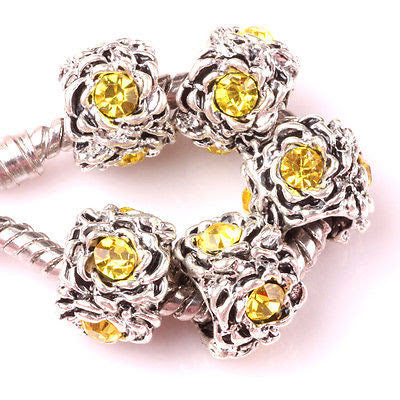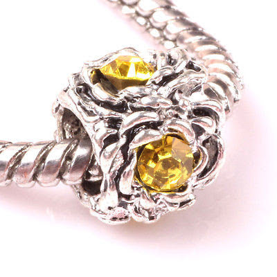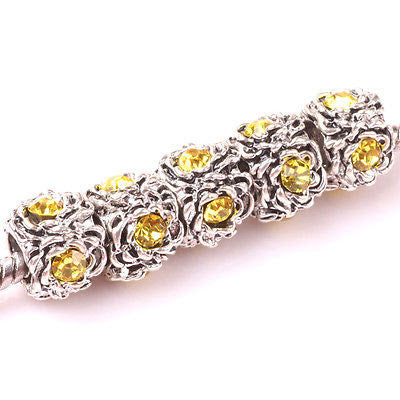 Elegant Handcrafted 5Pc Tibetan Silver  "BeYoutiful Yellow Flower" Crystal Adorned Tibetan Silver Spacer Charm Beads
