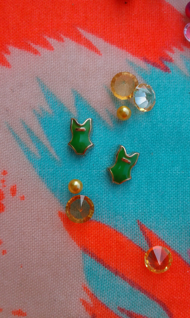 Retro Classy Green and Gold Bathing Suit Floating Charm