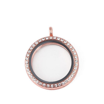 30mm Charming Sparkling Rose Gold Glass Alloy Beyoutiful Memory Crystal Locket Necklace