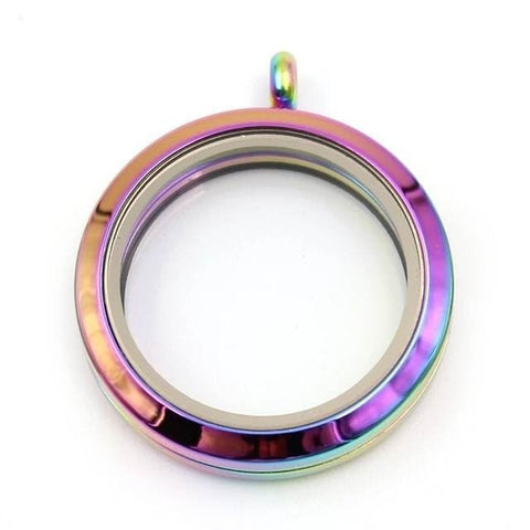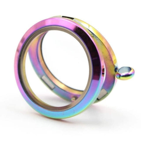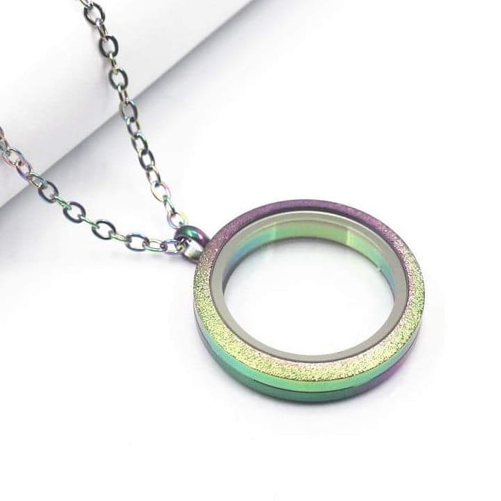 Unique Fashion Glamour Dual Sided Designed Stainless Steel "BeYoutiful Rainbow Twist" 30mm Memory Locket Keepsake Necklace