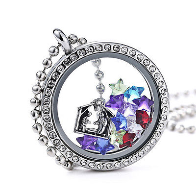 30mm Silver Sparkling Crystal Glass Alloy Beyoutiful Memory Locket