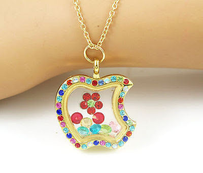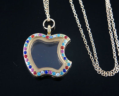 19.5" Gold BeYoutiful Memory Birthstone Crystal Apple Magnetic Locket Necklace