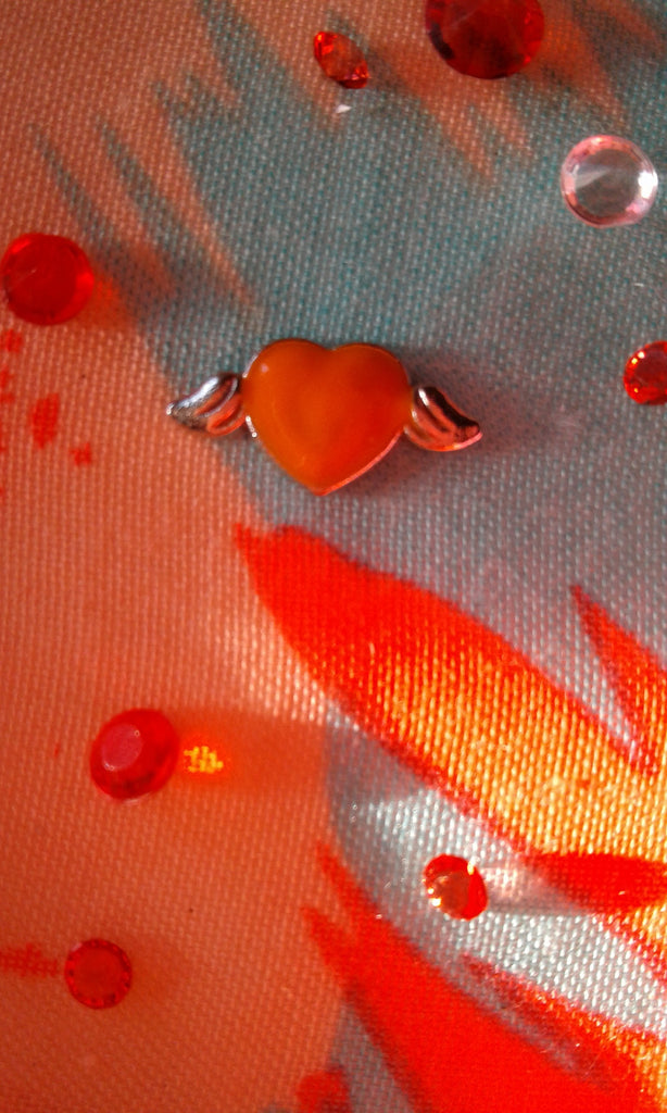 Orange Wing Floating Heart Charm