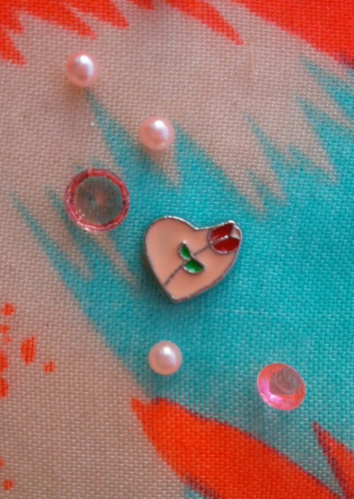 Red Rose Pink Heart Floating Charm perfect for Valentine's, Anniversary and Bridal Lockets