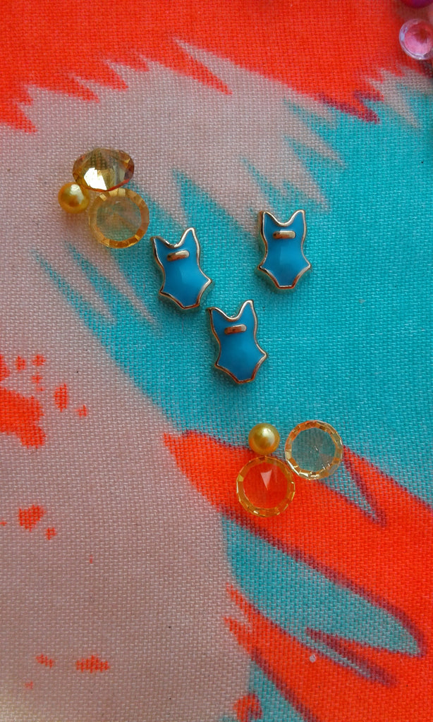 Retro Classy Blue and Gold Bathing Suit Floating Charm