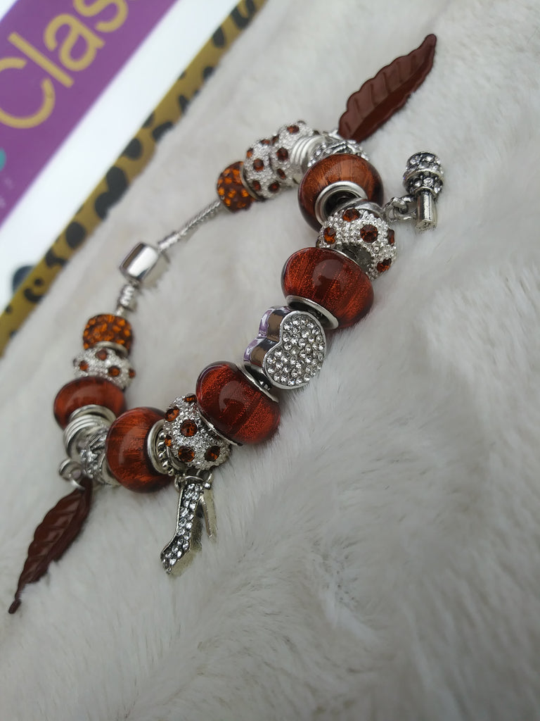 7.5" Sparkling Chic One-of-a-Kind Warm Chocolate Crystal Adorned Fall Inspired "BeYoutiful Autumn" Silver Alloy Charm Bracelet Featuring our "BeYoutiful Coffee" Murano Glass Glamour Charm Beads