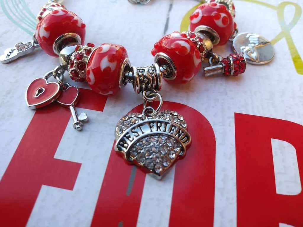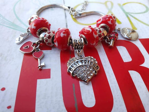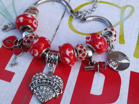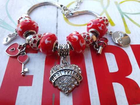 7.5" One-of-a-Kind Deliciously Sweet Cherry Red Crystal Bling Adorned "BeYoutiful Best Friend" Silver Alloy Charm Bracelet