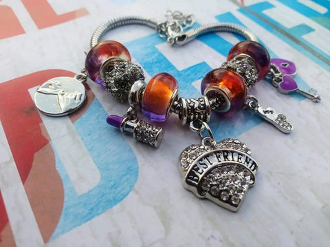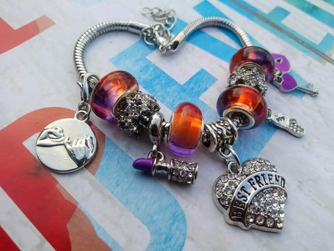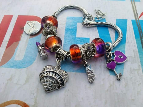 7.5" One-of-a-Kind & Vibrantly Unique Murano Glass "BeYoutiful BFF" Fashionista Crystal Glamour Alloy Charm Bracelet