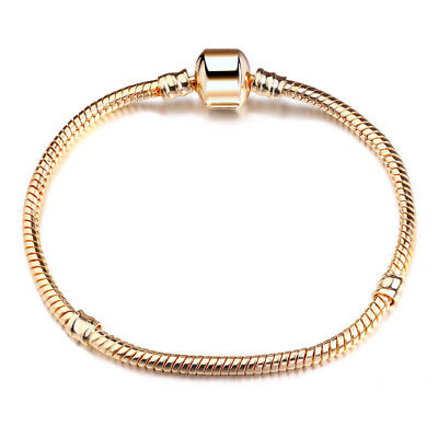 7.5" Gold Alloy "BeYoutiful Barrel Clasp" 3mm Round Snake Chain Designed Charm Bracelet