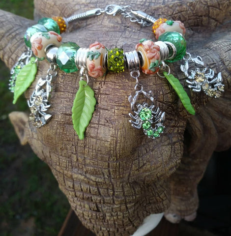 7.5" Earthy & Wild Nature Inspired Custom Unique "BeYoutiful Wild" Crystal Glamour Alloy Charm Bracelet
