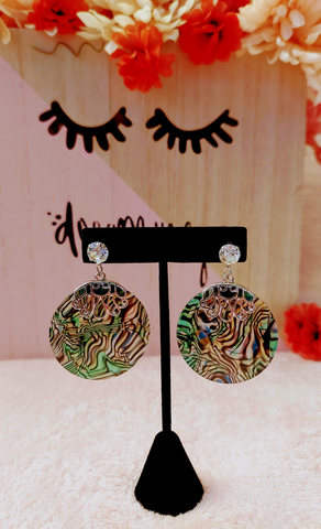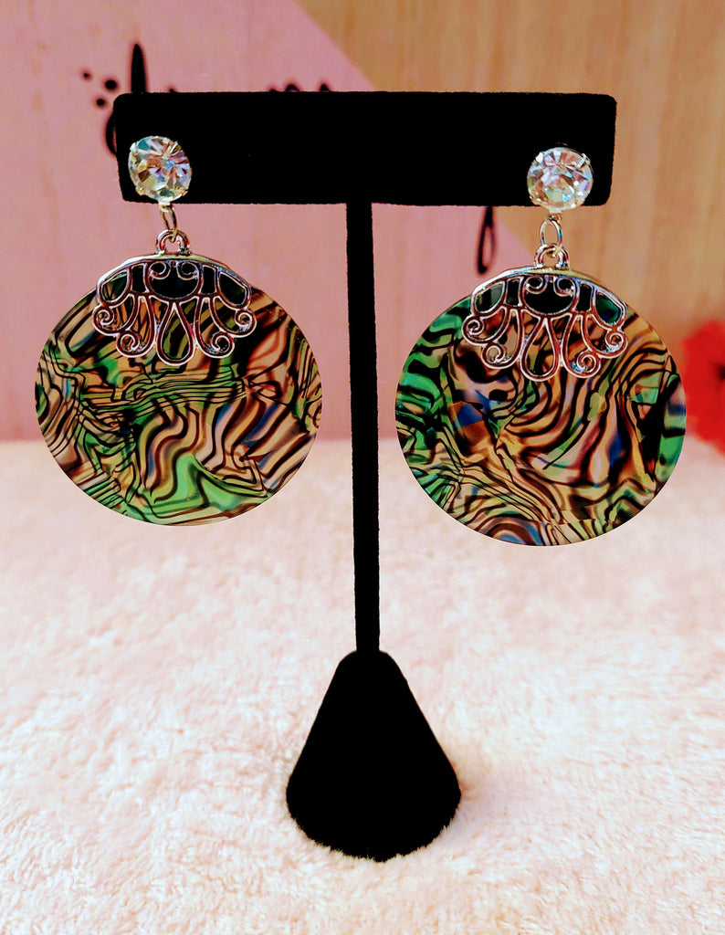 Silver Sparkle "BeYoutiful Andromeda" Natural Round Abalone Shell Drop Earrings