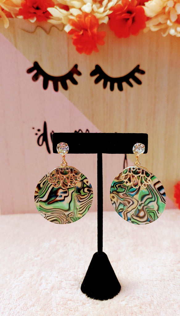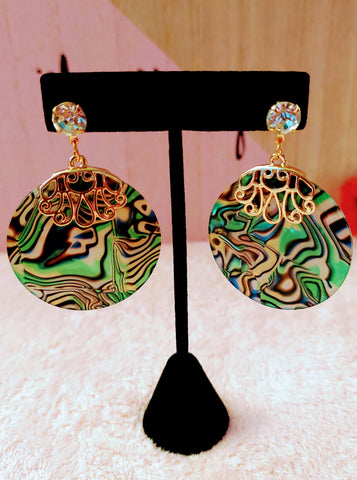 Gold Sparkle "BeYoutiful Andromeda" Natural Round Abalone Shell Drop Earrings