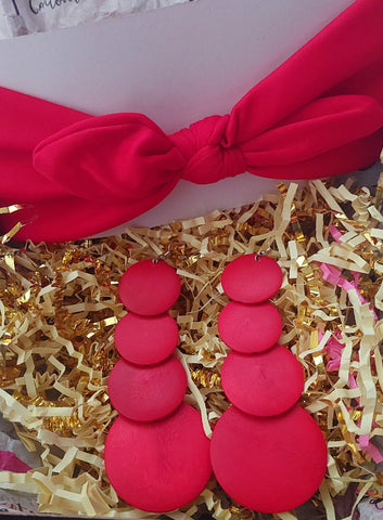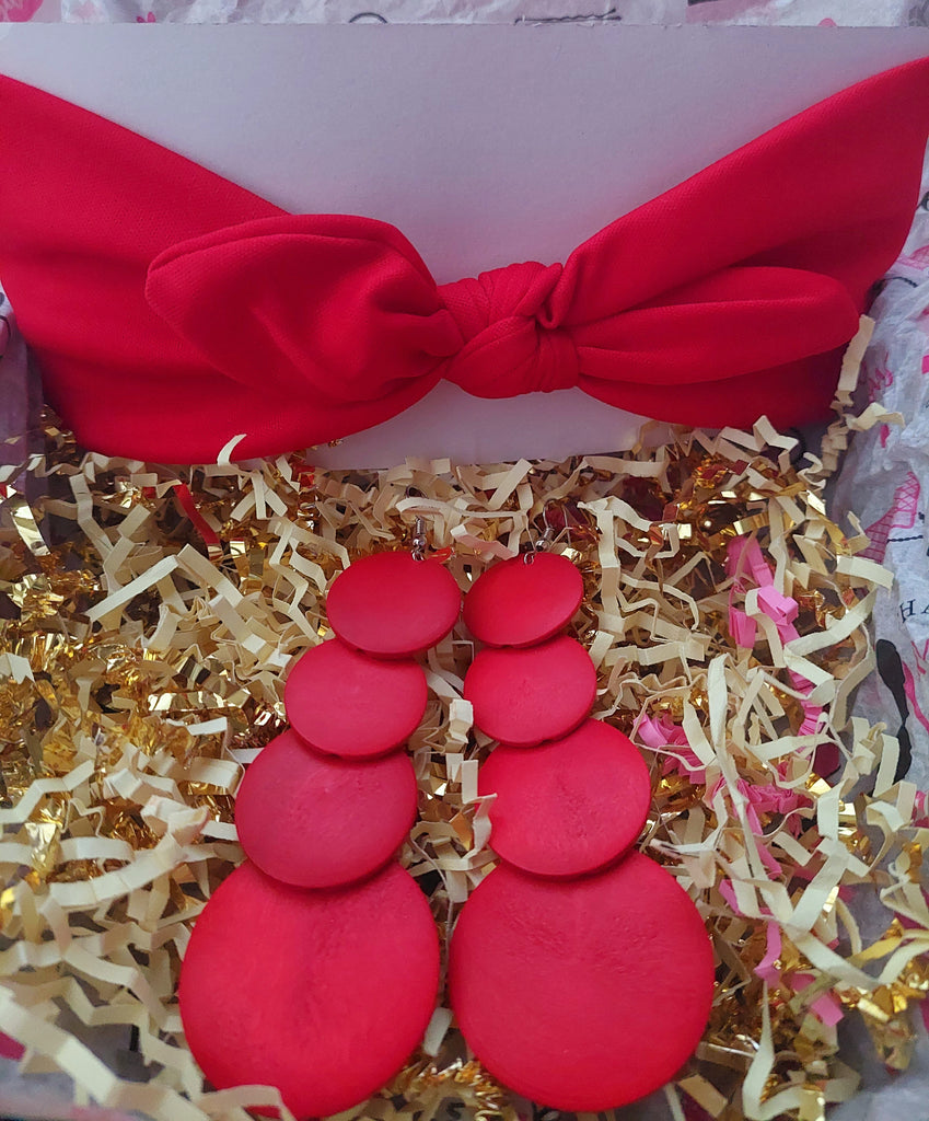 Red Simple Soft Fabric "BeYoutiful Twist" Headband & Matching "BeYoutiful Rain" Natural Wood Earrings