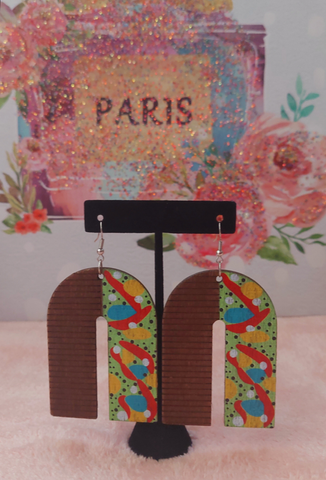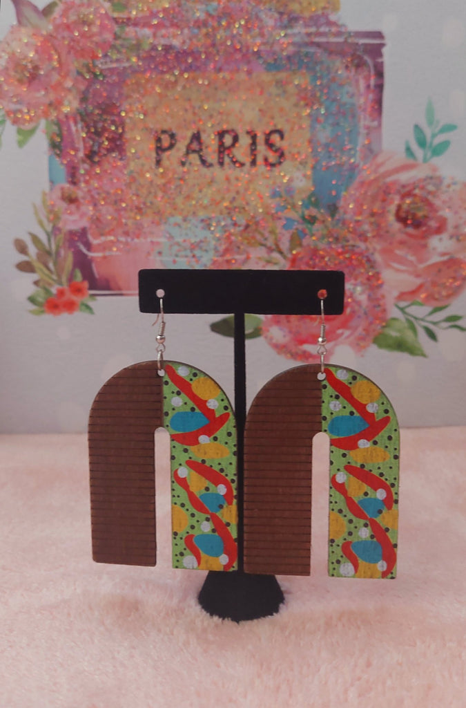 3" Green Geometric "BeYoutiful Lyra" Painted Wood Arch Dangle Earrings