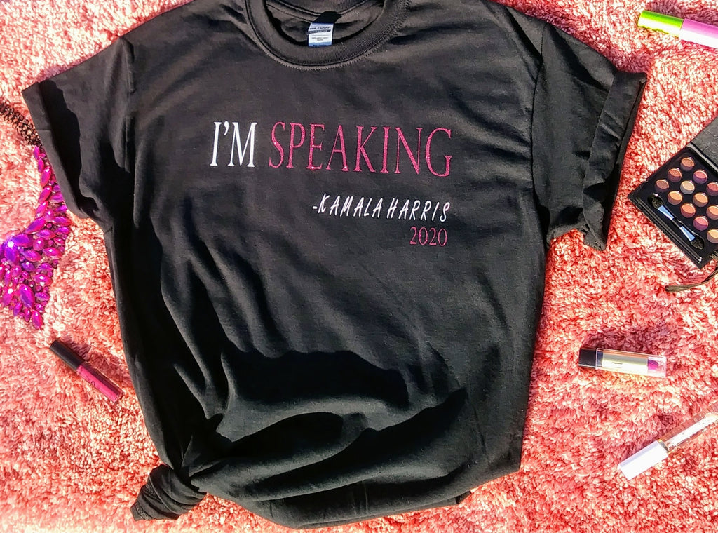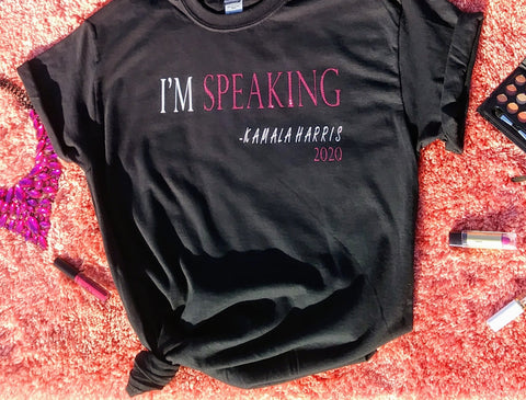 Blush Glitter & White "I'm Speaking" Black Royal Tee