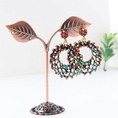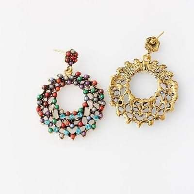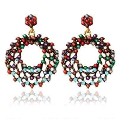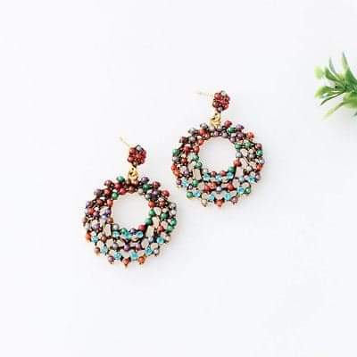 Colorful Lively & Lovely Beaded Hollow "BeYoutiful Bohemian Hoops" Gold Post Crystal Statement Earrings