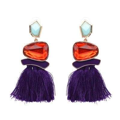 Vibrant & Eye-Catching Purple Tassel "BeYoutiful Bohemian Jewels" Gold Alloy Post Statement Earrings