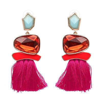 Lively Colorful & Fun Geometrical Designed "BeYoutiful Bohemian Jewels" Gold Post Pink Tassel Statement Earrings