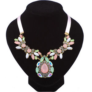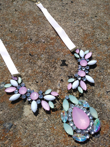 Opulent Designed "BeYoutiful Celestial" Crystal and Resin Stone Chunky Bib Pendant Statement Necklace