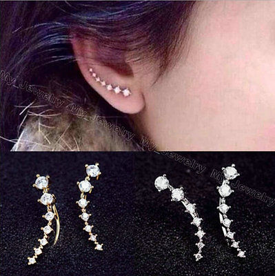 Stunningly "BeYoutiful Crystal Star" Silver Alloy Ear Cuff Stud Earrings