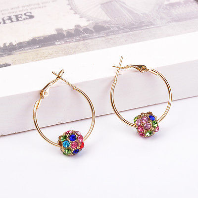 Stylish Gold Alloy "BeYoutiful Infinity" Multifaceted Crystal Ball Bead Hoop Earrings