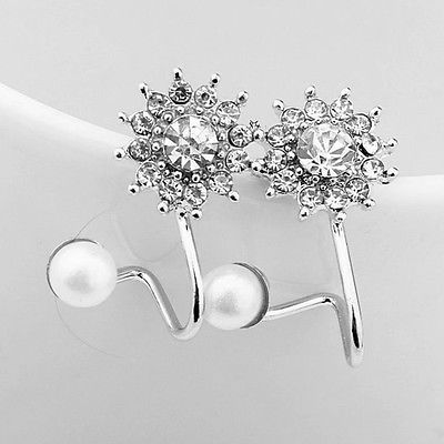 Elegant Silver Alloy "BeYoutiful Pearl" Crystal Ear Cuff Stud Earrings