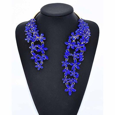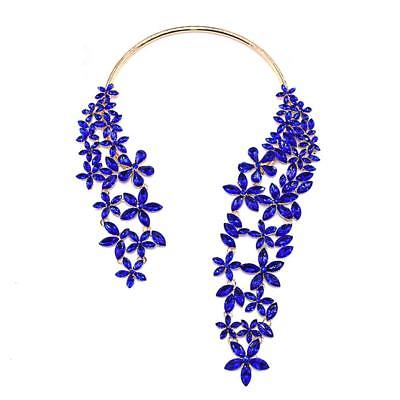 Gold Alloy "BeYoutiful Sapphire Starflower" Chunky Collar Crystal Pendant Choker Bib Statement Necklace
