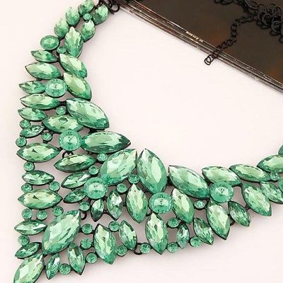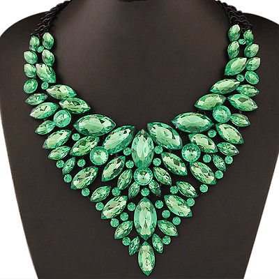 Shimmering & Stunning Emerald Crystal Adorned "BeYoutiful Universe" Chunky Collar Bib Statement Necklace